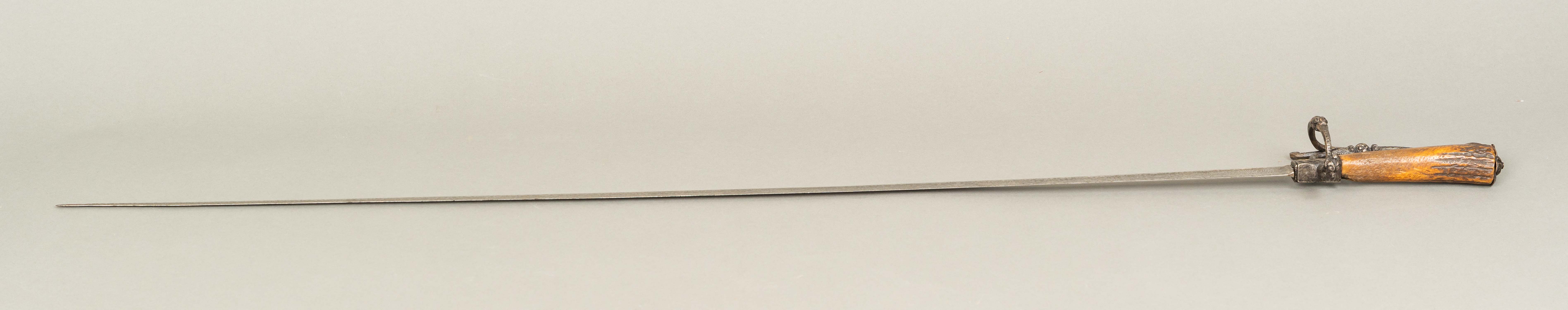 DEUTSCH AUCTIONEERS Lot107 in DetailGerman Saber, canted and engraved blade. Iron forged and decorated hand protection. Antler handgrip. 17/18th Century. 98 cm long.