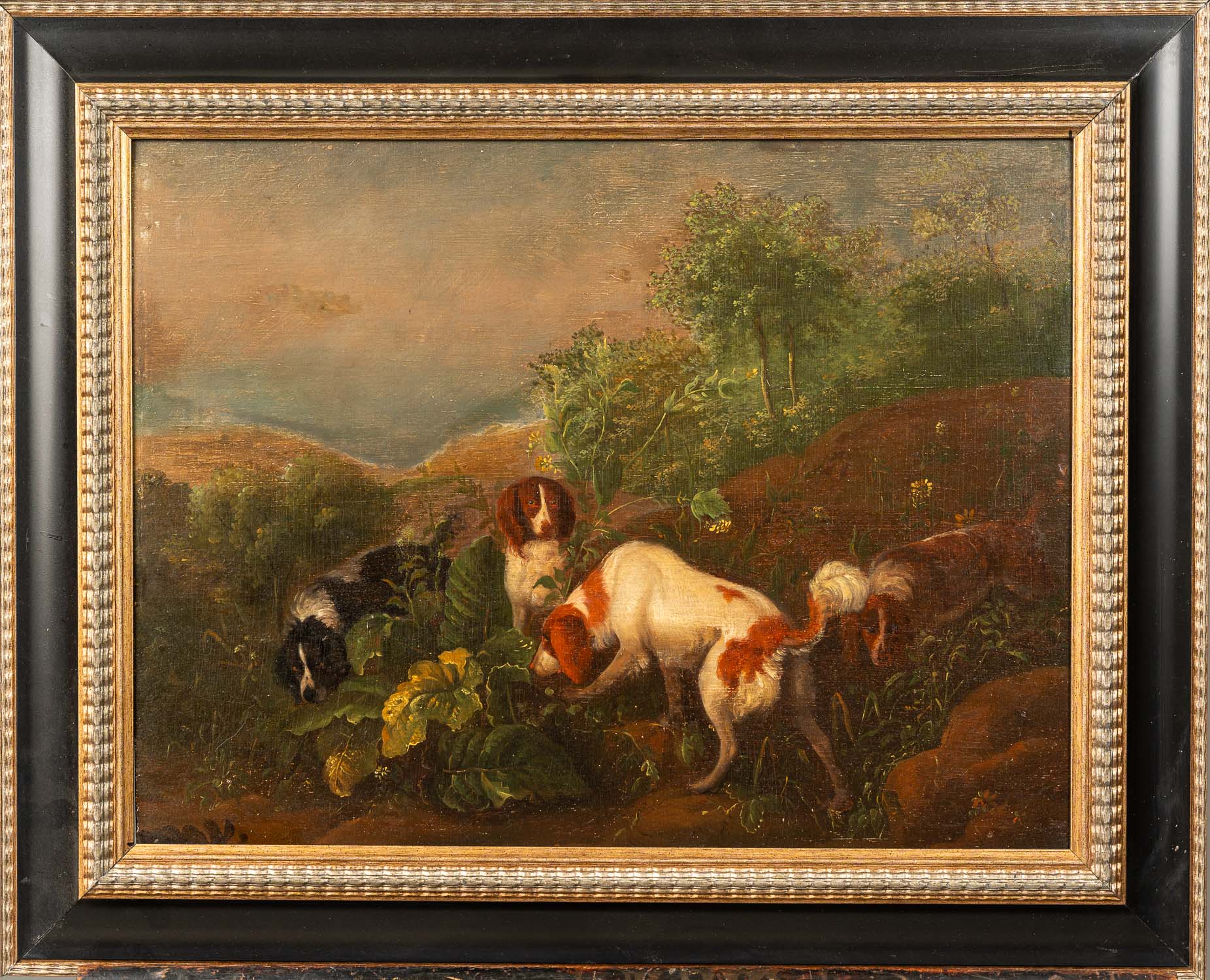 DEUTSCH AUCTIONEERS Lot108 in DetailAdrian Beeldemaker ( 1618-1709)- attributed, Dogs in landscape. Oil on wood. 40 x 54 cm . Framed.