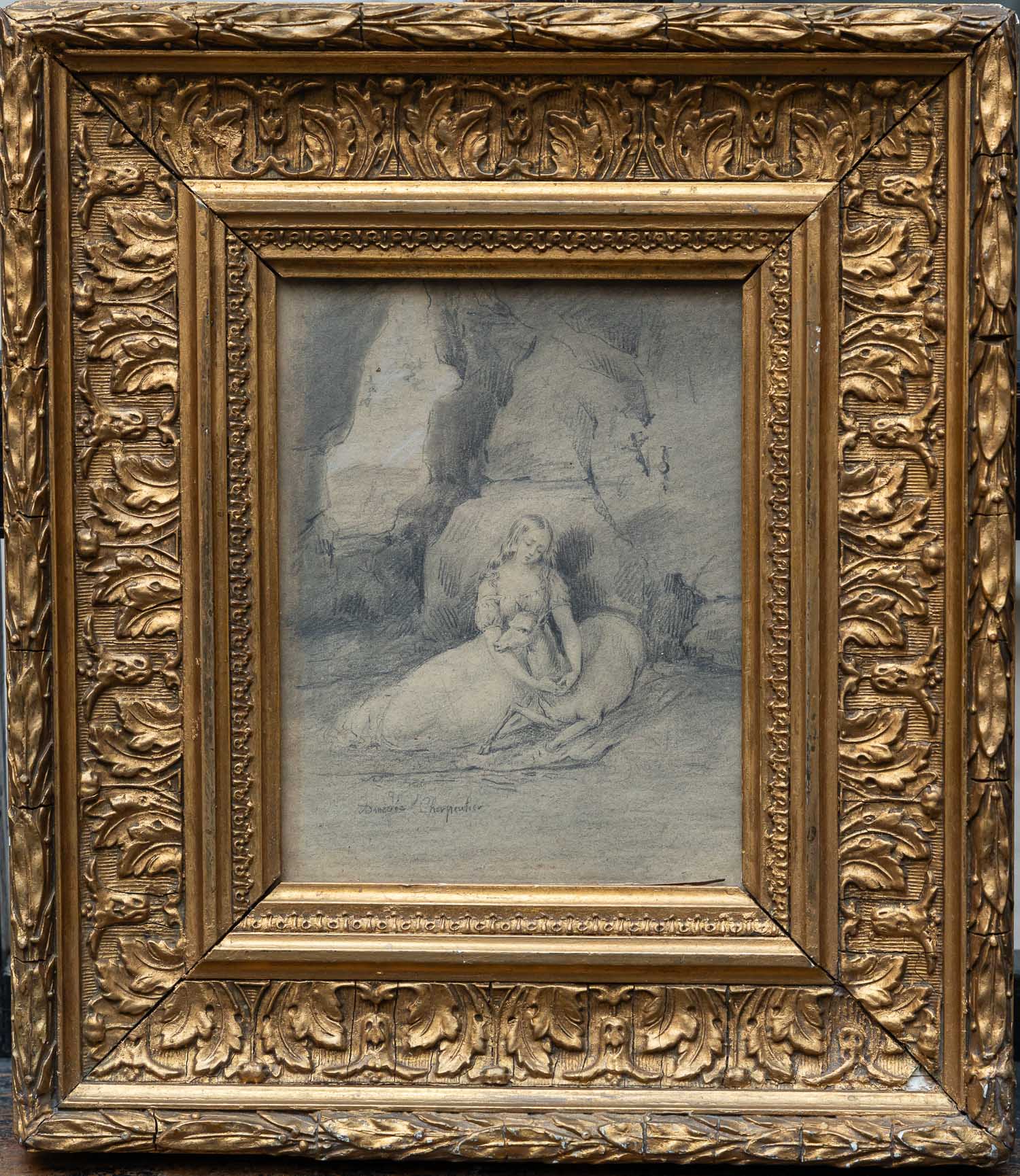 DEUTSCH AUCTIONEERS Lot114 in DetailAndrei Amedee Charpentier- Bosio ( 1822-1884), Girl with goat . Black chalk on paper. Signed. Framed. 18 x 14 cm
