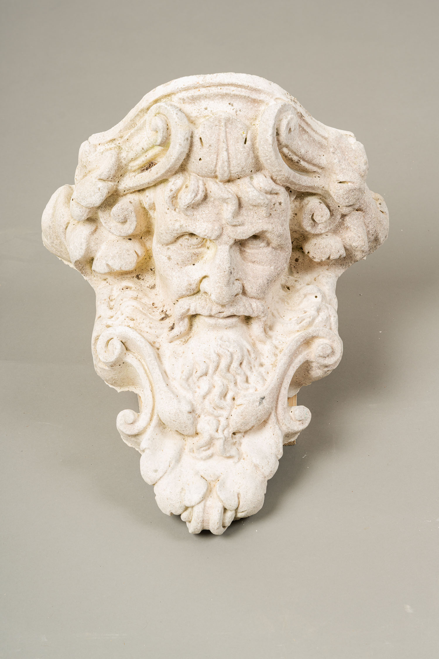 DEUTSCH AUCTIONEERS Lot115 in DetailArchitectural Ornament, Male Capitel, with bearded man with floral decorations. Stone cast. Around 1900. 46 x 50 cm.