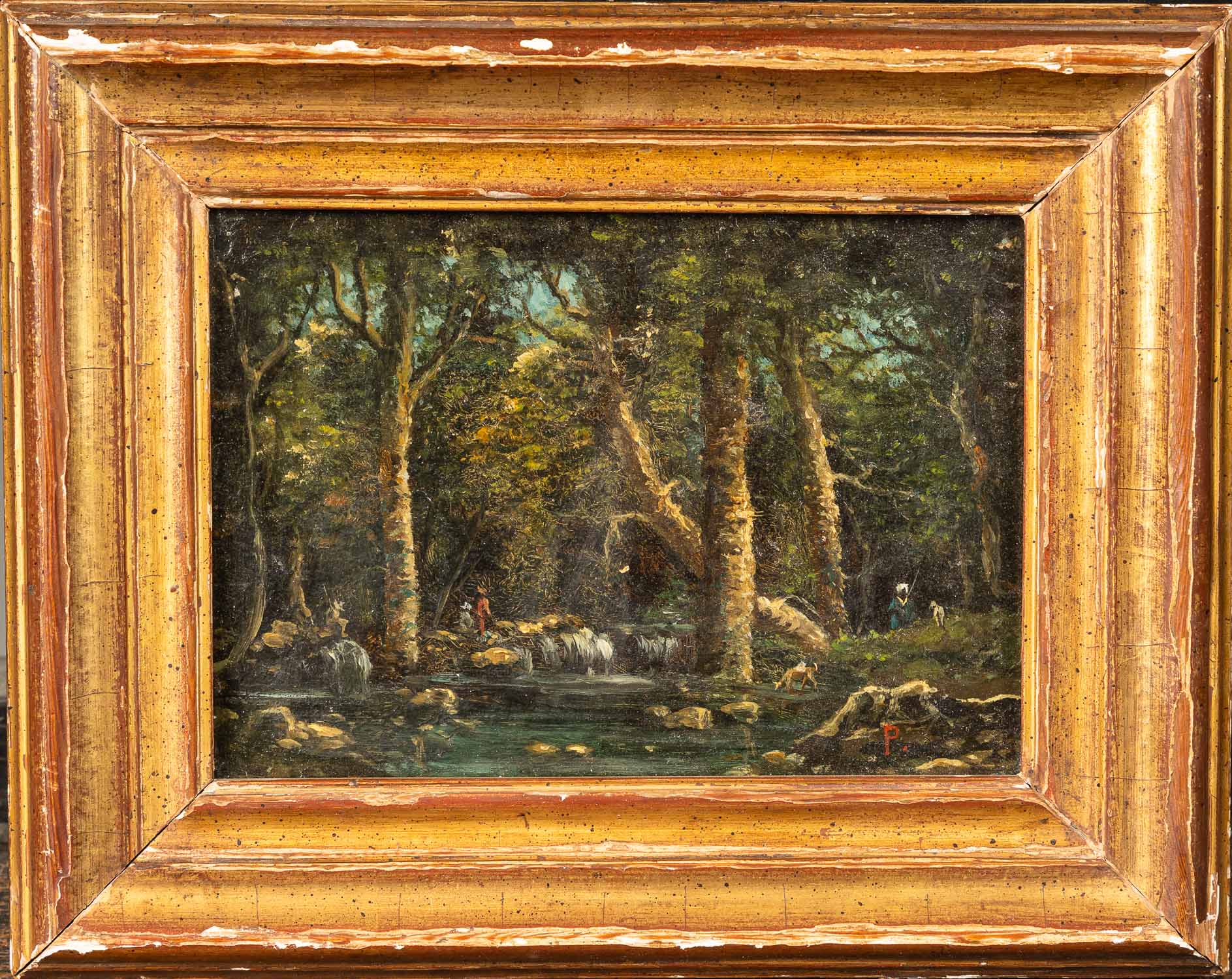 DEUTSCH AUCTIONEERS Lot119 in DetailMonogramist P. 19Th Century, Landscape with orientals by a river. Oil on board. Framed. 11 x 16 cm