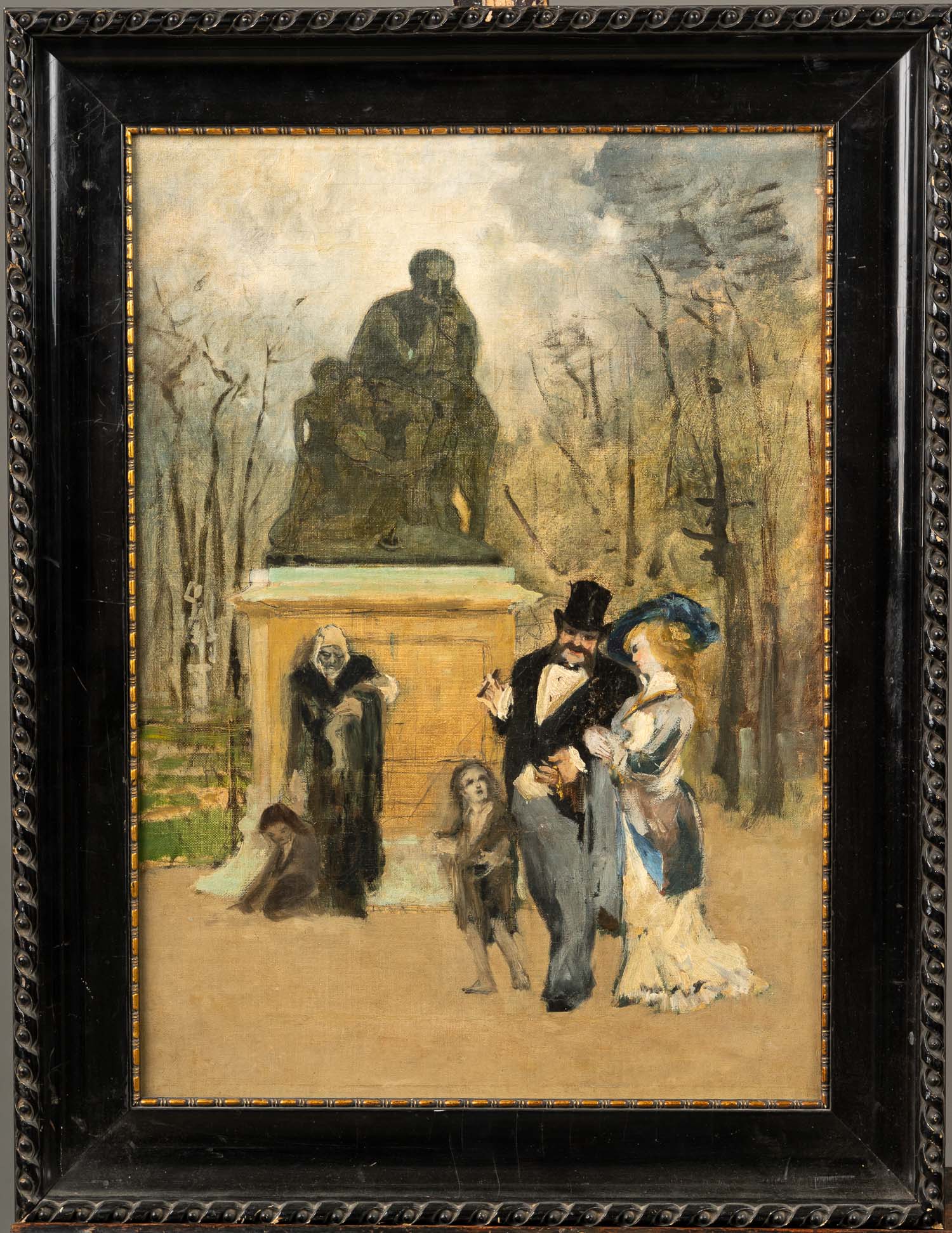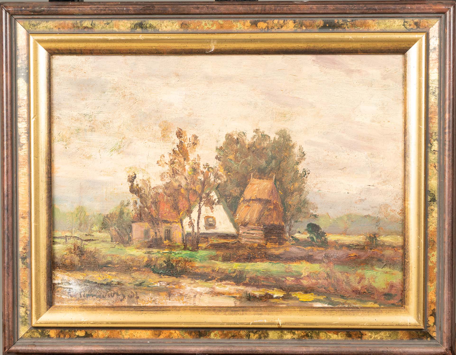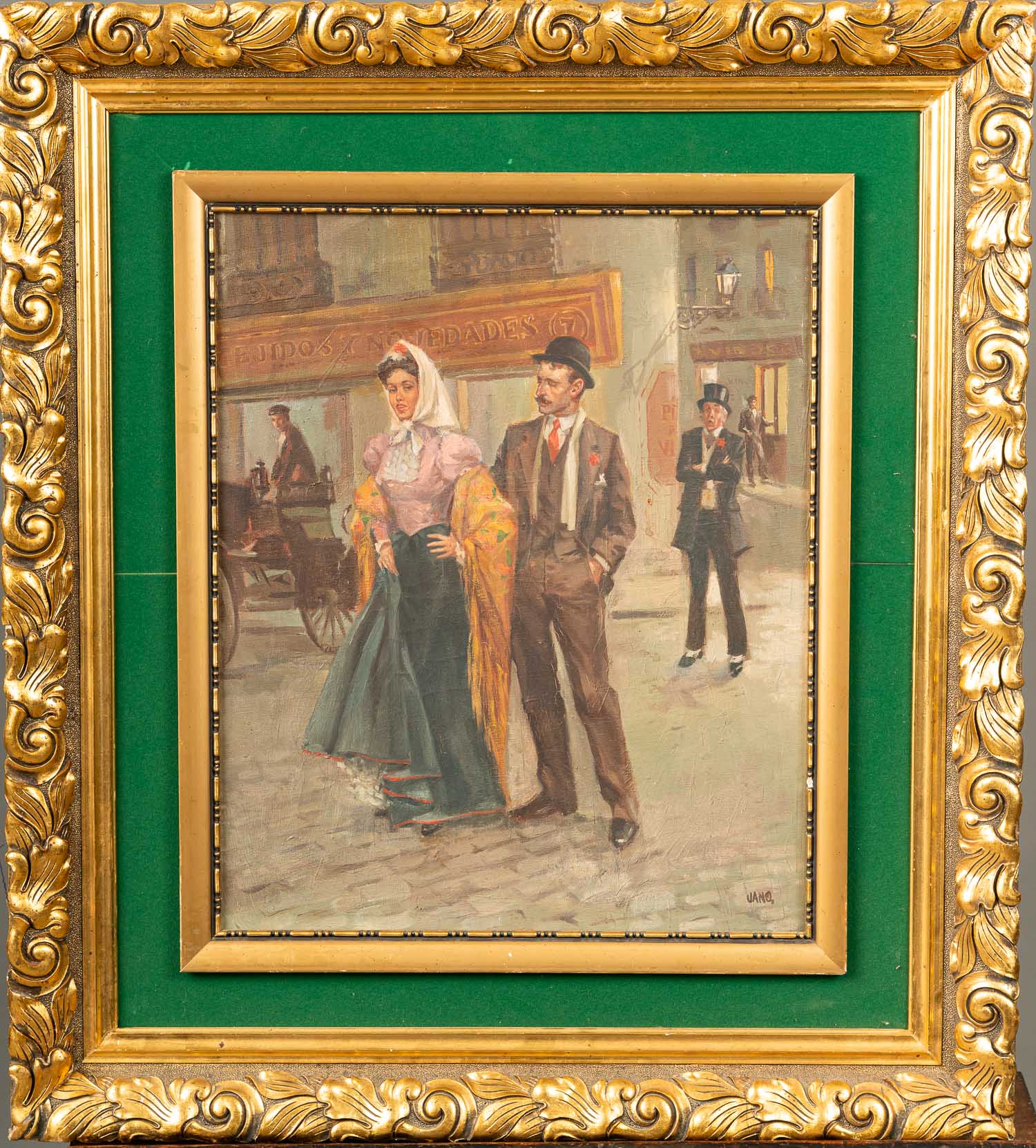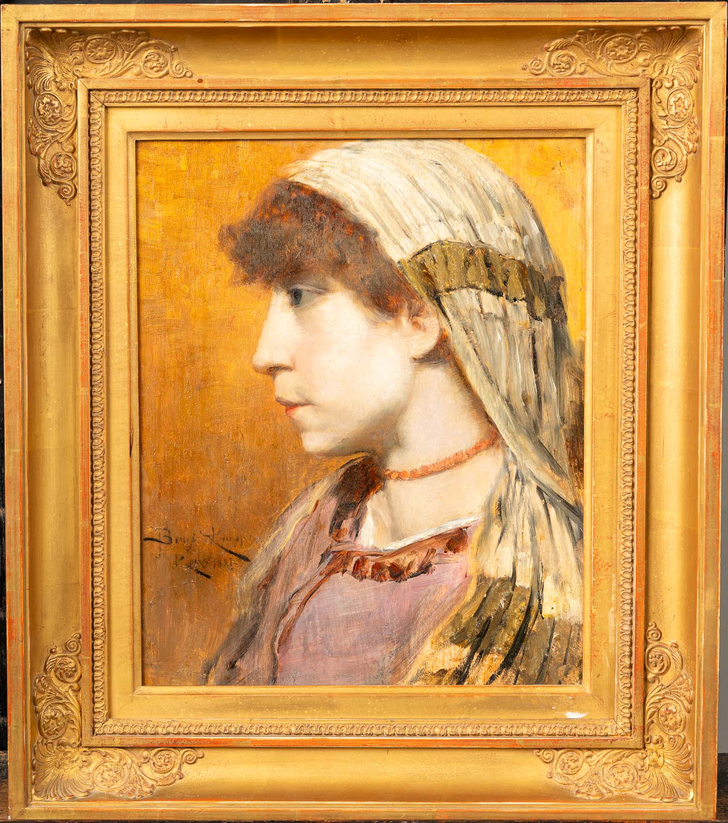 Large French Gold Snuff Box, oval shape with lid. Inside 18 Carat gold and with two hallmarks on the border. The inner lid gold plated. Decorated with gold and silver and gold plated ornamental and floral decorations. Two gold colours. Possibly two hallmarkson the outer side and lid. Green enamel leafs with white pearls. Six violet enamel fields. In the centre on top allegorical elegant enamel scene surrounded by white enamel pearls and gold boarder. Possibly Paris around 1770. Damages. 223 gramm. 8,2 x 6,5 x 2,8 cm.