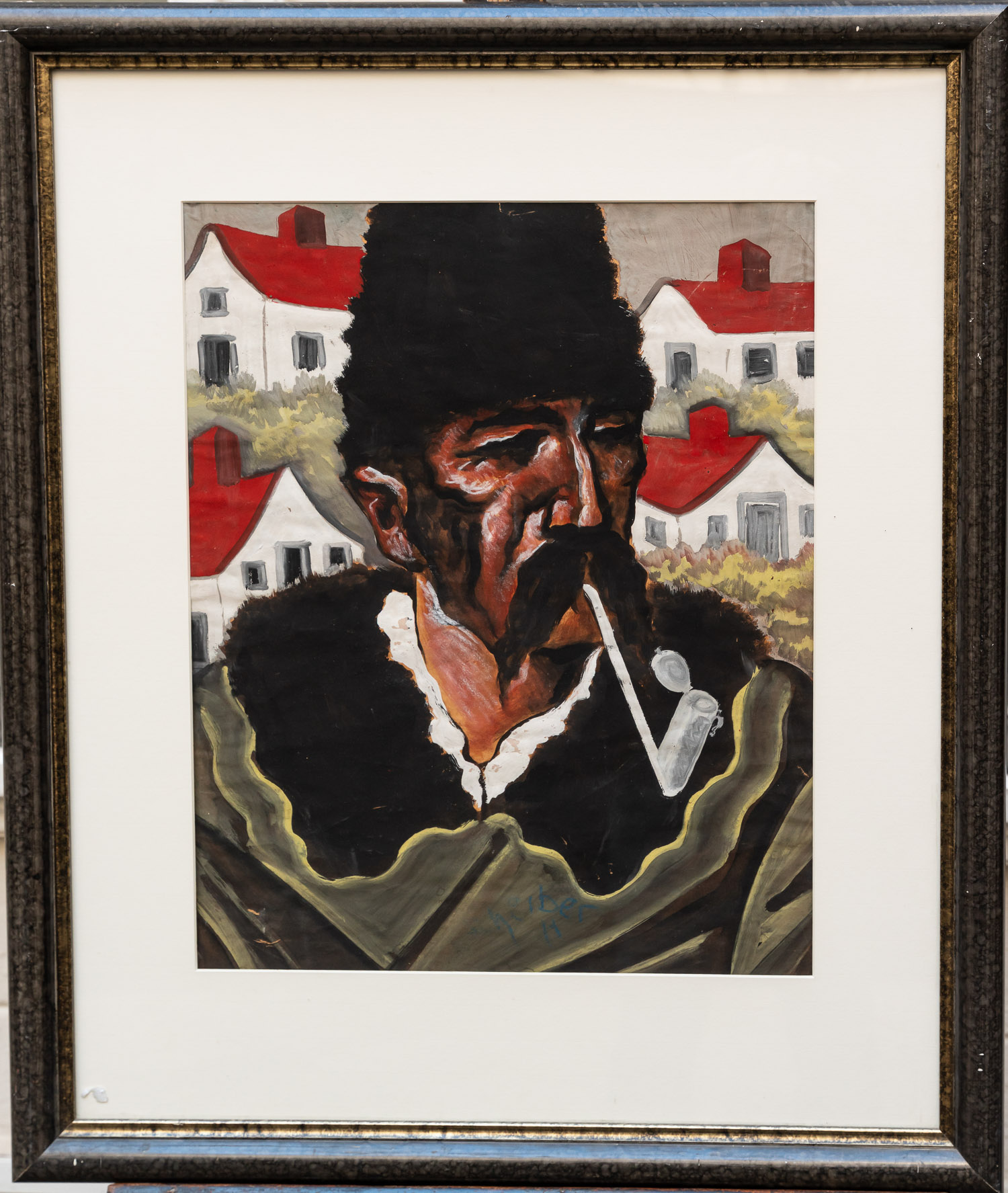 DEUTSCH AUCTIONEERS Lot264 in DetailHugo Scheiber ( 1873-1950), Farmer with pipe . Water and body colour on paper. Signed. Description on the reverse. Framed. 57 x 45 cm