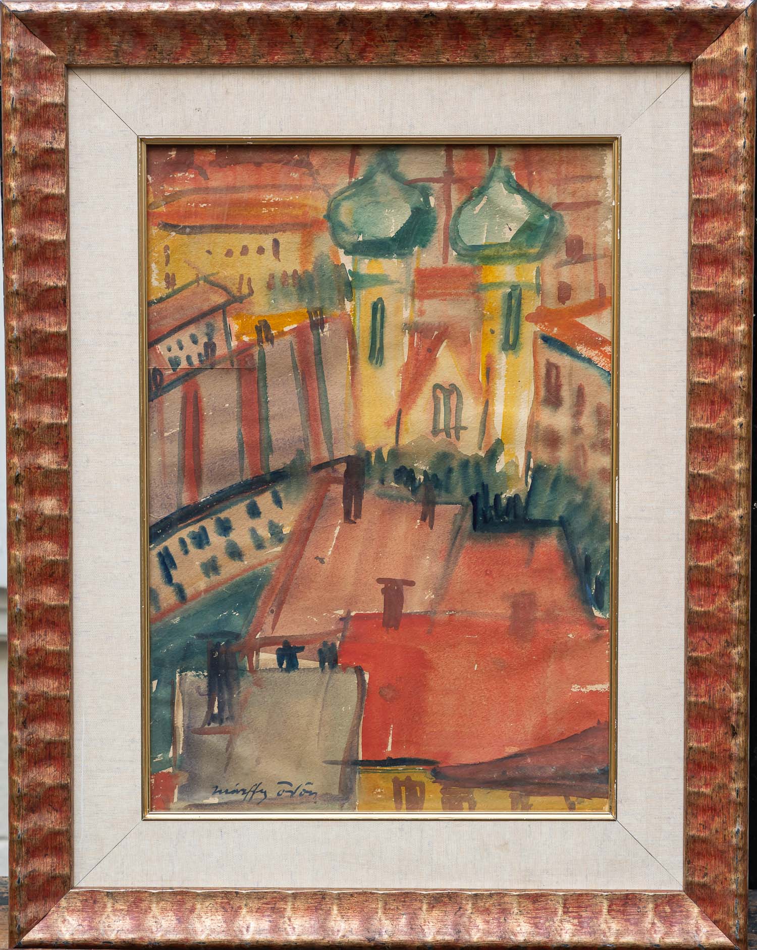 DEUTSCH AUCTIONEERS Lot266 in DetailÖdön Marffy ( 1878-1959)- attributed, Church in town. Water colour on paper. Signed bottom left. Framed. 42 x 30 cm