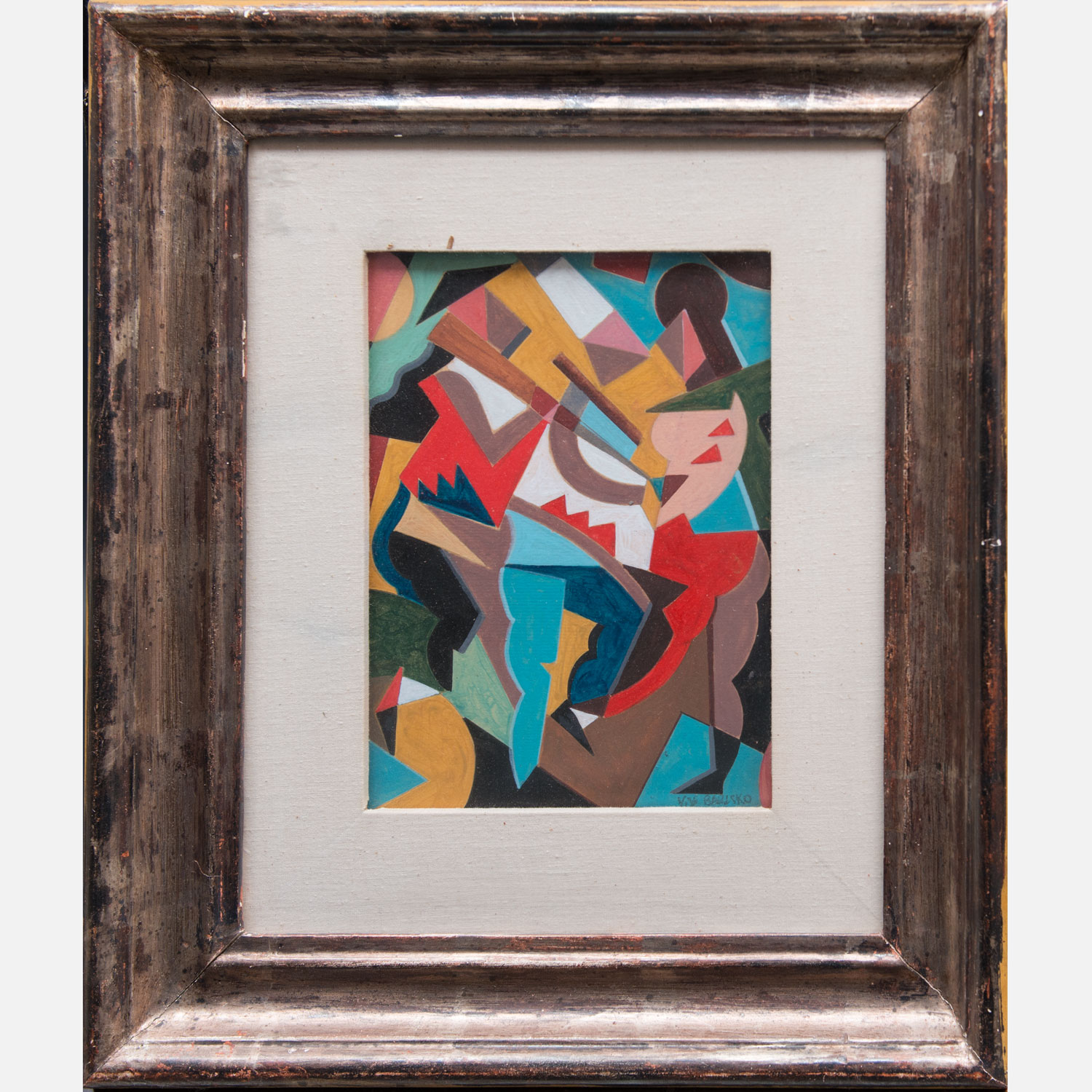 DEUTSCH AUCTIONEERS Lot269 in DetailFuturist around 1920-30, Compossition probably Eastern school , watercolour on board, signed bottom right, framed under glass. 25 x 18 cm