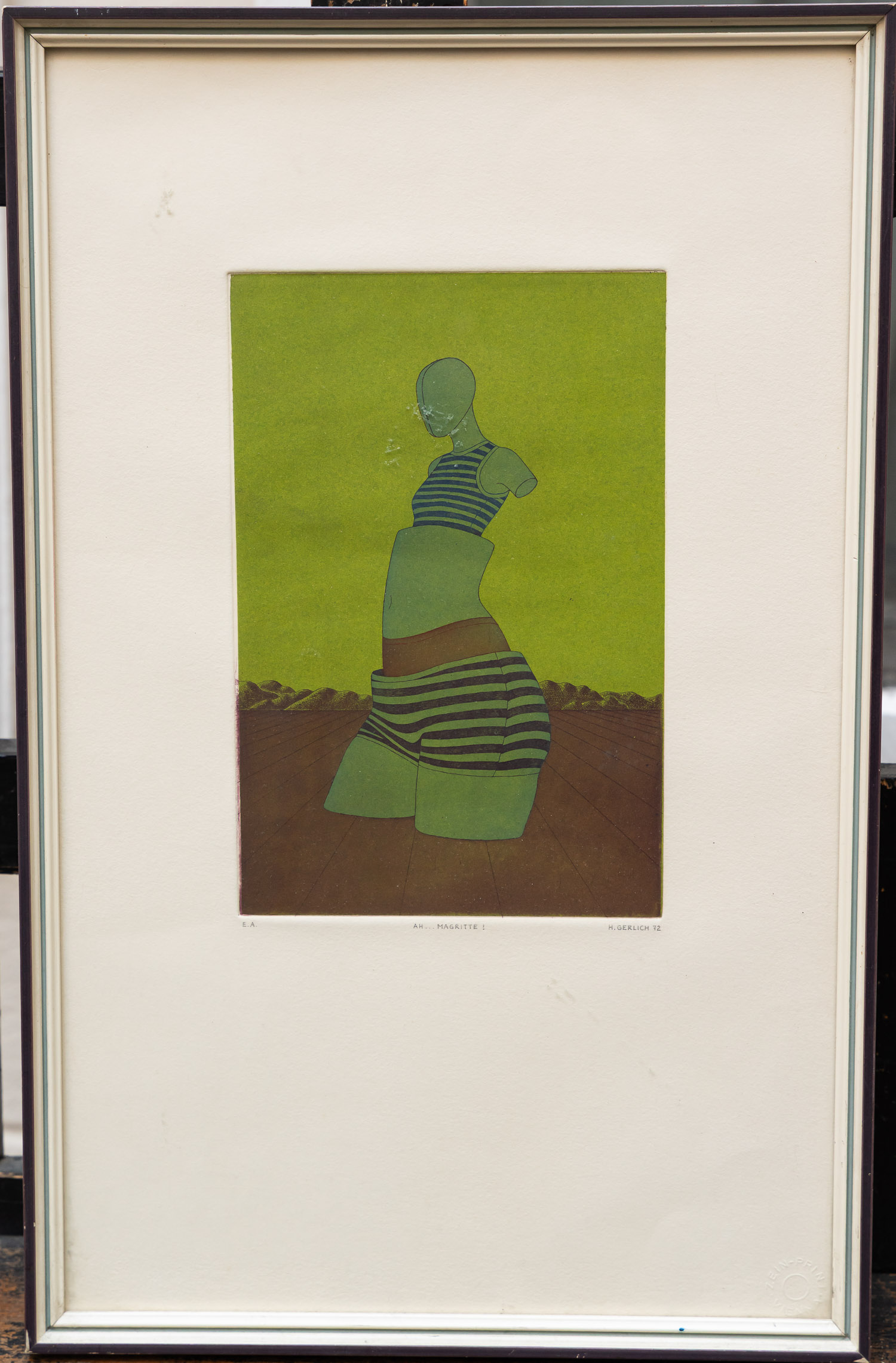 DEUTSCH AUCTIONEERS Lot272 in DetailHans Gerlich ( born 1945) – Graphic, Aha .... Margritte " etching on paper, framed. 23 x 16 cm