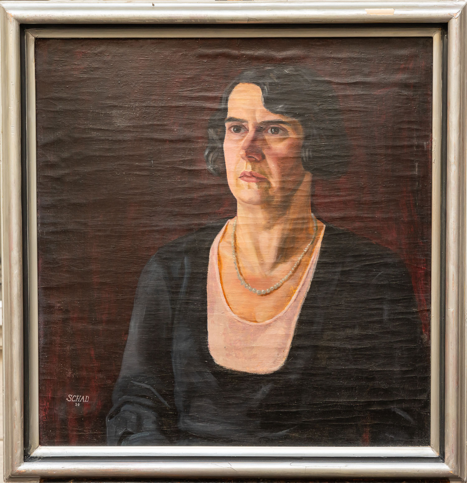 DEUTSCH AUCTIONEERS Lot274 in DetailChristian Schad ( 1894-1982)- attributed, Portrait of a lady. Oil on canvas on board. Framed. Signed bottom left and dated 30 . 60 x 58 cm